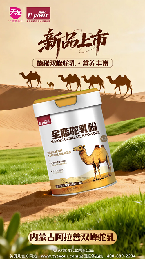 健康赛道再添黑马!经过无数次匠心打磨与品质坚守,英贝儿全脂驼乳粉今日正式上市!这罐凝聚沙漠生命力的黄金营养罐,不仅完整保留驼奶天然全脂营养,更富含原生乳铁蛋白、16种骆驼原生氨基酸,为你和家人筑起健康新防线!