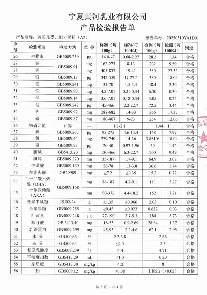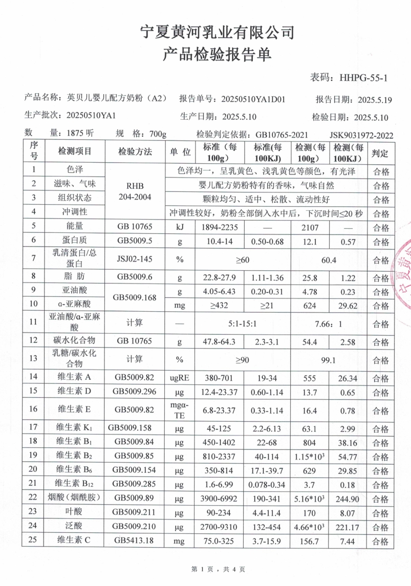 [下一篇] 英贝儿配方奶粉800克2段20250406YB2