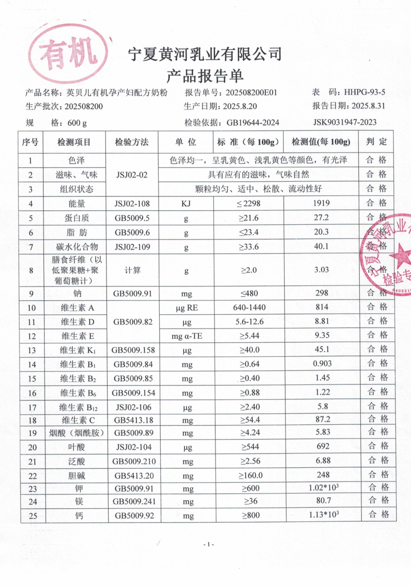 英贝儿有机孕妇600克20250820