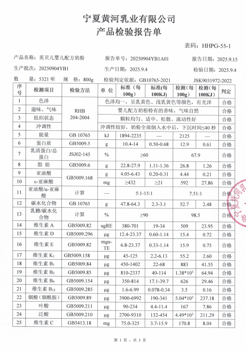 英贝儿800克1段20250904