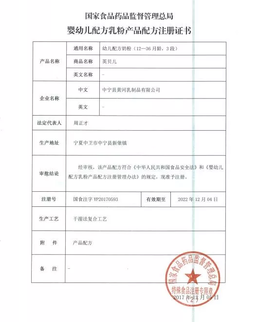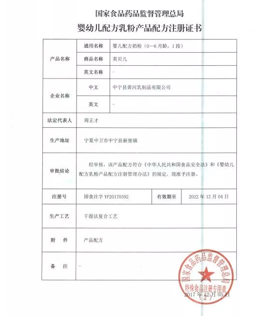 在2017年12月5日,国家食品药品监督管理总局发布12月份第一批通过注册的婴幼儿配方乳粉名单中,黄河乳业旗下“E.your英贝儿”配方奶粉顺利通过注册。就在近日,这一喜讯再添实锤——英贝儿婴幼儿配方奶粉注册证书正式曝光!