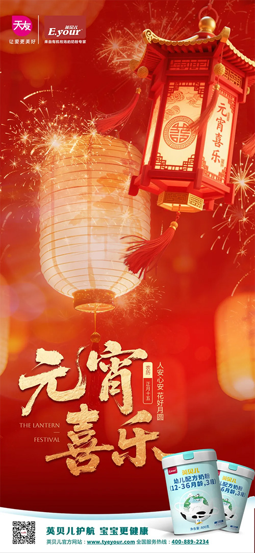 马年启新程,以爱为翼,共赴成长山海 元宵是春节的收尾,更是新征程的起点。丙午马年,寓意着奔腾与向上,正如宝宝的成长,永远充满活力与希望。作为深耕母婴营养领域的守护者,英贝儿奶粉始终坚持做良心奶粉、铸百年诚信,时刻把宝宝健康放在第一位。从奶源甄选到生产加工,每一步都经过严苛检测,只为让每一勺奶粉,都承载着妈妈的信任与宝宝的健康;从科普育儿知识到陪伴家庭成长,我们始终与父母并肩,破解育儿路上的难题,让每一份爱,都有科学的方向。 灯火映童心,守护伴成长 这个元宵节,让英贝儿奶粉与您一同,把团圆的甜蜜藏进时光,把营养的守护融入日常。愿每一个宝宝,都能如骏马般茁壮成长,步履不停;愿每一个家庭,都能岁岁常团圆,事事皆圆满。元宵快乐,成长喜乐!