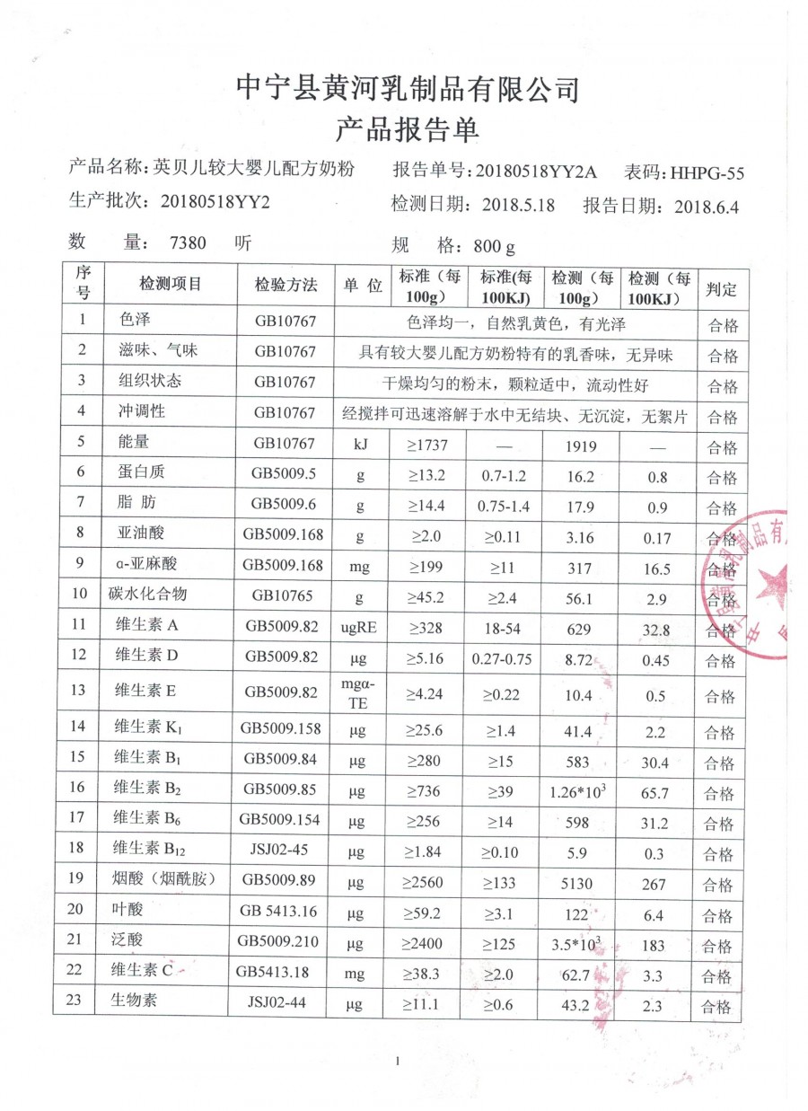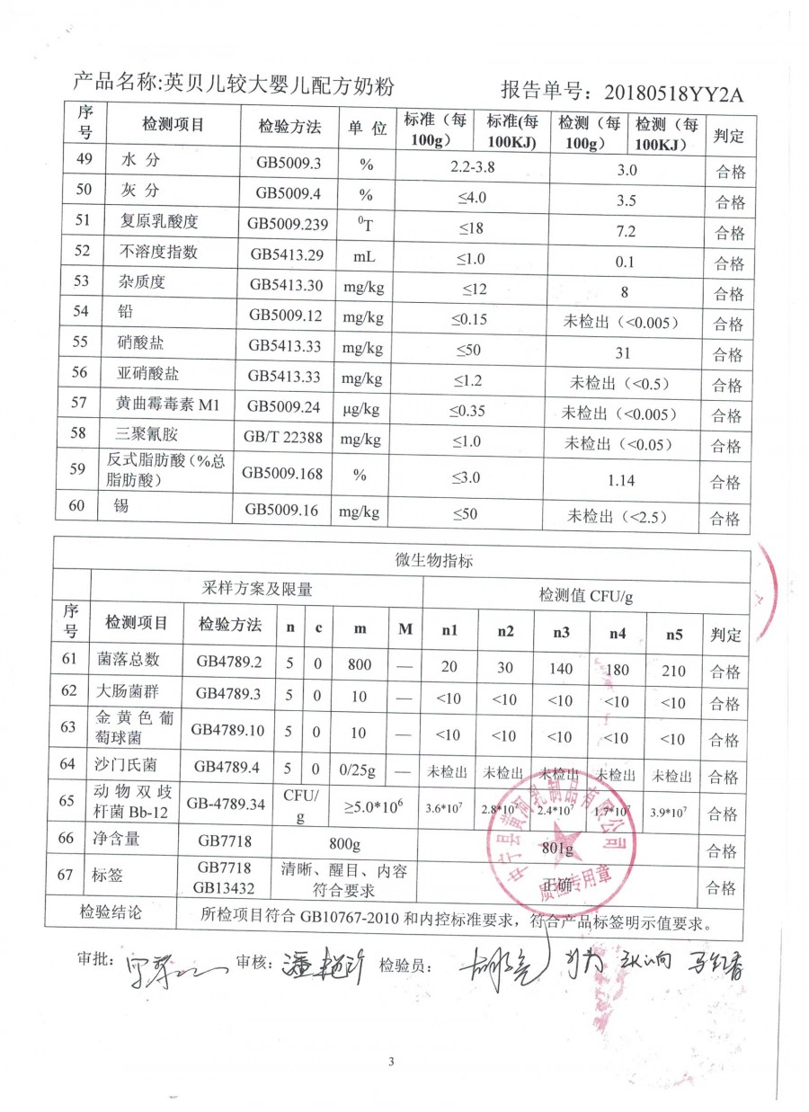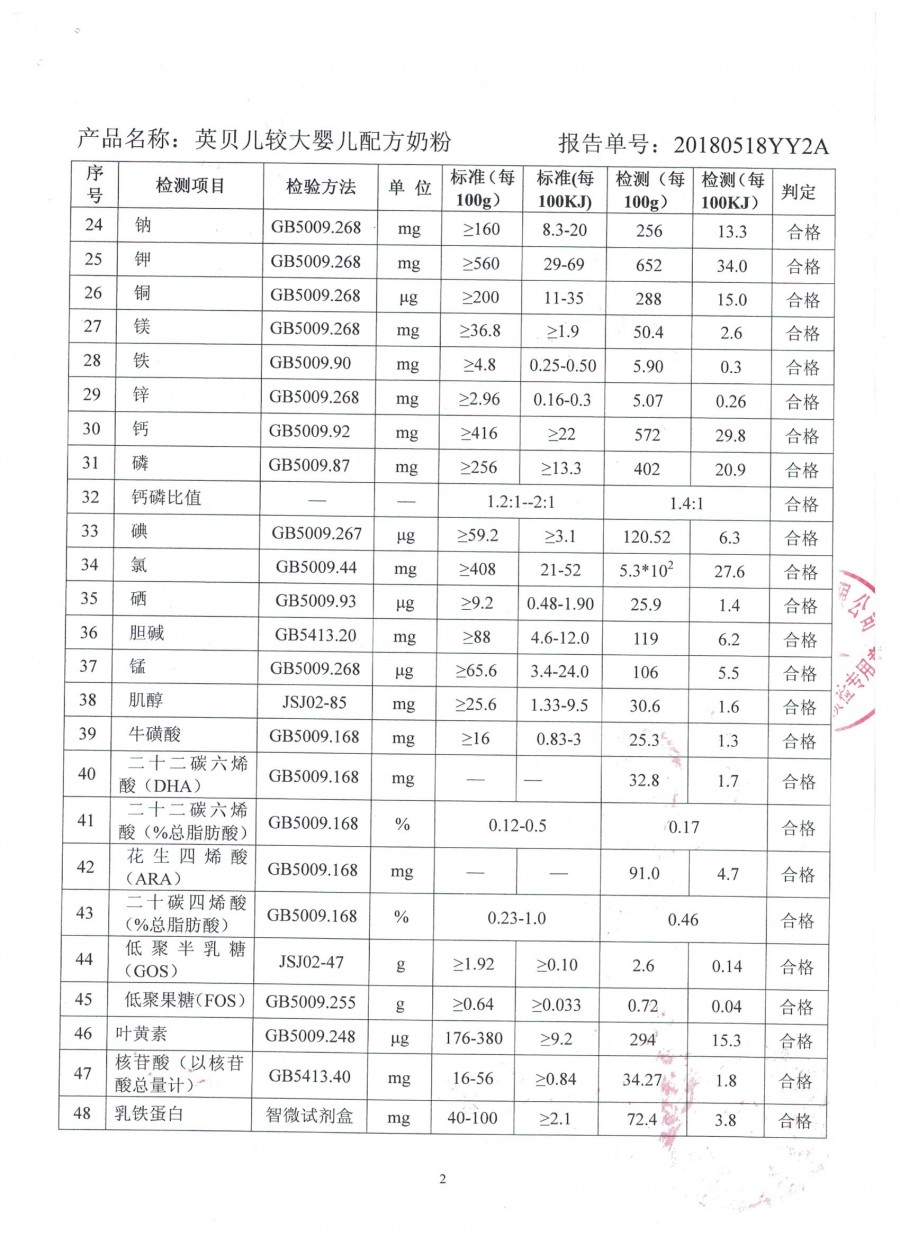 英贝儿800克2段2018年5月18日
