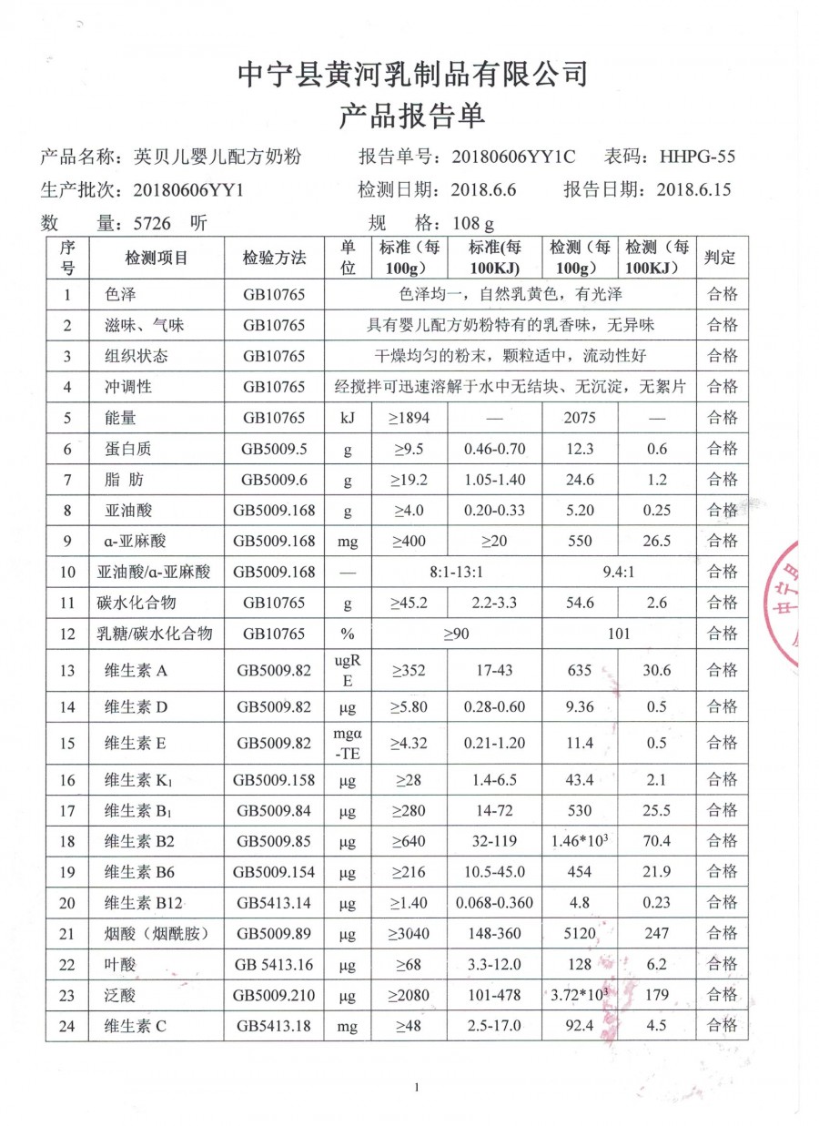 英贝儿108克1段2018年6月6日