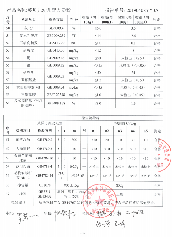 英贝儿800克3段2019年4月8日