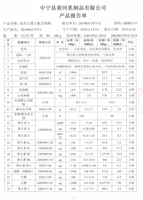 英贝儿108克1段20190413