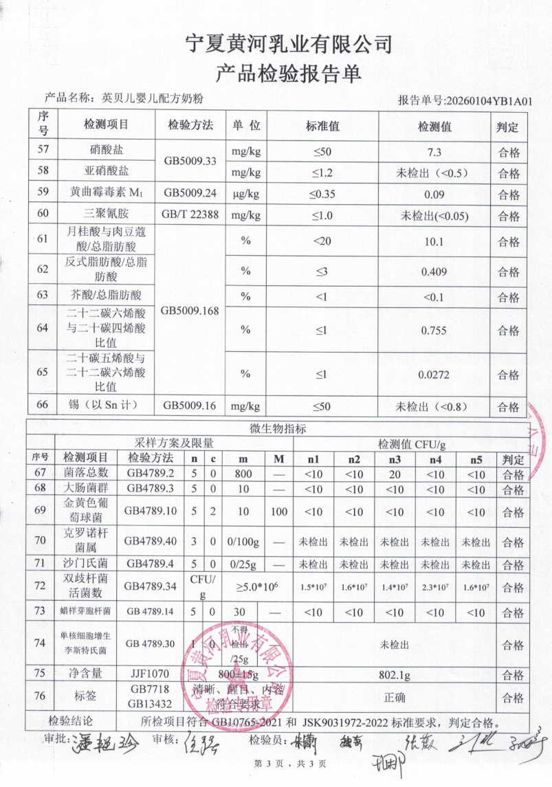 英贝儿800克1段20260104